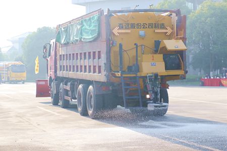 演練活動在高速管理公司所轄杭浦高速管理處開展,20多名演練人員,1臺渦噴6吹雪車、2臺撒鹽機、2臺雪鏟車、多臺路巡車嚴陣以待,積極投入到演練活動中來。隨著演練總指揮一聲令下,渦噴6吹雪車轟轟隆隆啟動了,大噴頭里一股熱浪急速涌出。“這輛吹雪車是公司1月份新引進除雪設備,它擁有航空軸流式渦噴6發動機,最大吹雪速度≥20km/h,一次除雪寬度≥30m,功率大,風力強、除雪效力高,能有效地清除車體兩側積雪和浮冰,是嘉興境內首臺吹雪車,是冬季高速公路除雪保暢工作的終極利器”杭浦管理處主任周劍介紹道,“是我們冬季抗冰除雪的‘新底牌’和主力軍。”