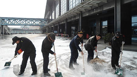 一、領導坐鎮,指揮有力。國鴻汽運公司領導每天早上6點在汽車北站集中碰頭,實行現場辦公,及時掌握冰雪天氣的影響程度,了解道路狀況及開行條件,有效落實各項防寒抗雪應急措施,指揮場站人員維護秩序、排摸安全隱患,同時親自帶頭清掃站場積雪,確保公司道路運輸和其他生產安全、有序。
